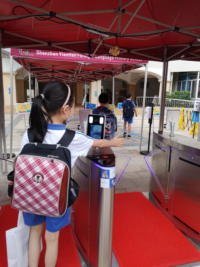 深圳卡联股份在2020年6月1日,顺利完成深圳盐田外国语小学红外测温刷脸通道闸机项目并启用,为学校孩子们保驾护航!